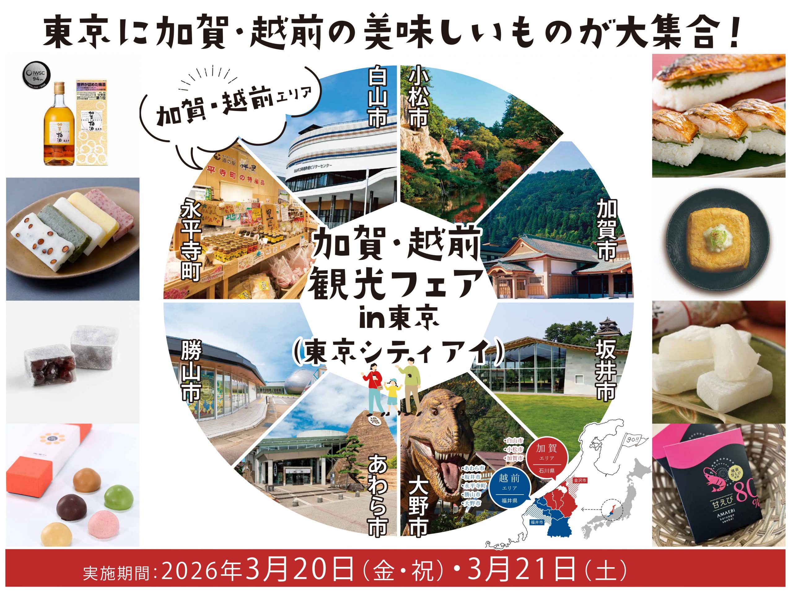 石川県・福井県の県境をまたぐ白山市、小松市、加賀市、あわら市、坂井市、大野市、勝山市、永平寺町の8市町からなる魅力あふれる加賀越前エリア!