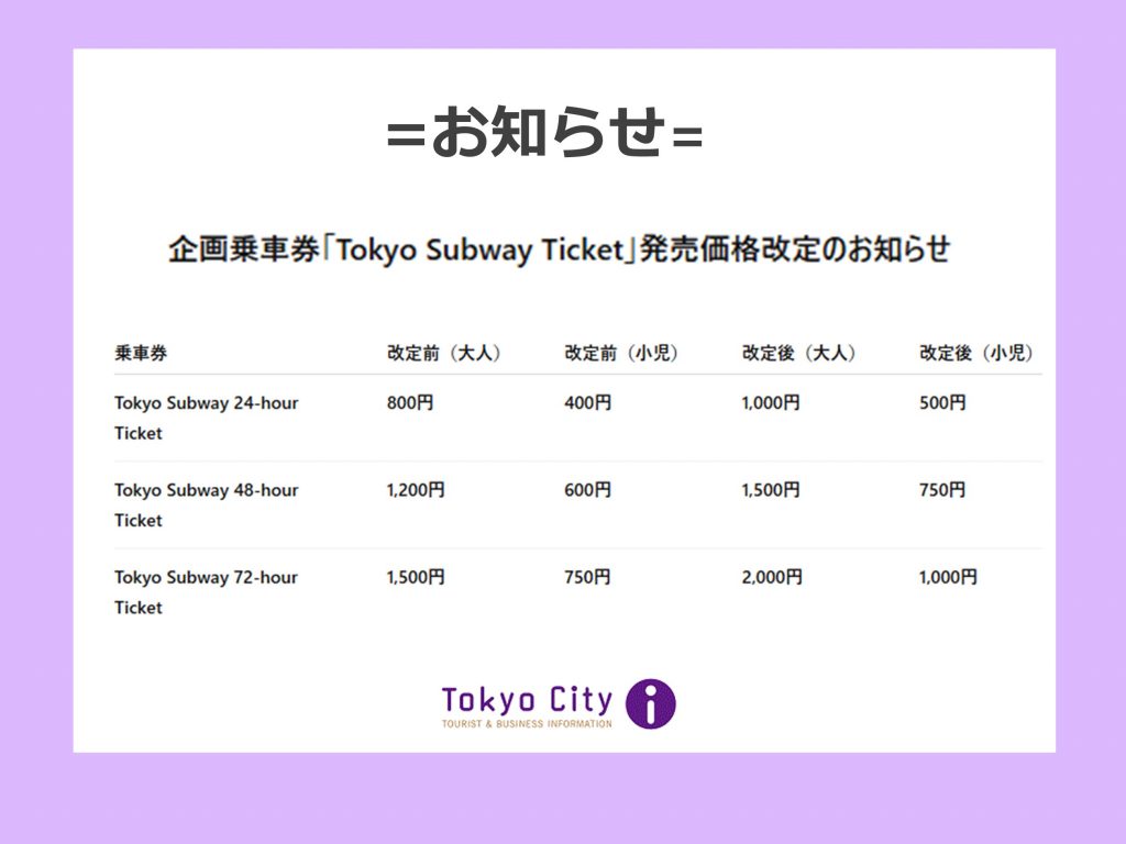 企画乗車券 「Tokyo Subway Ticket」 につきまして、